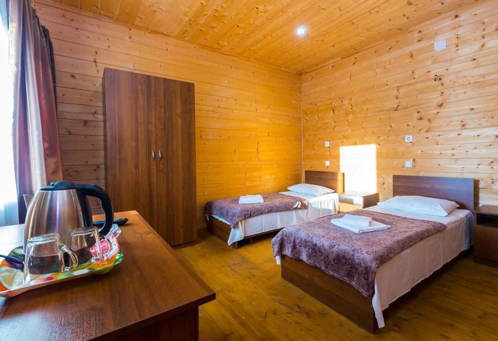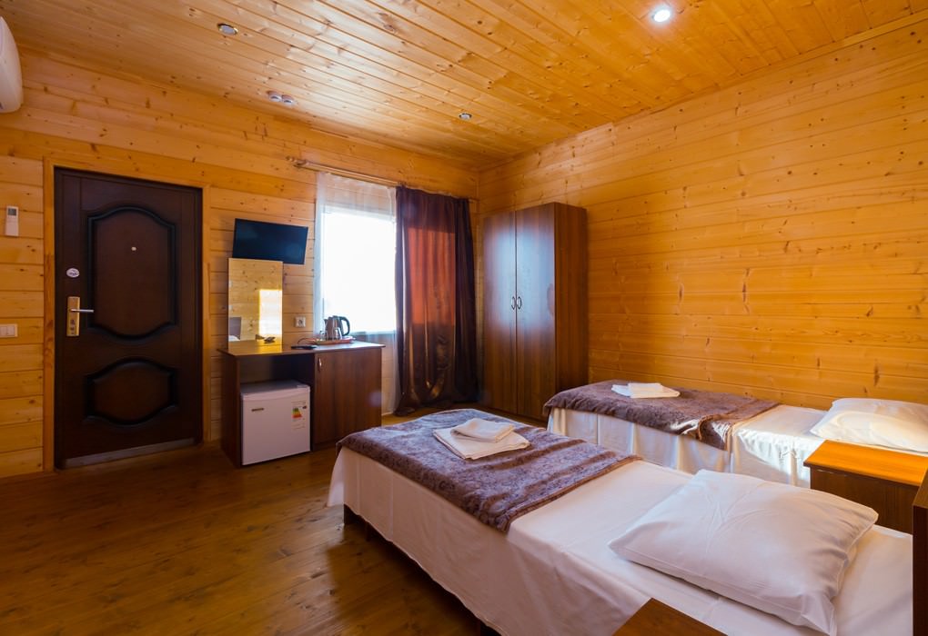 Площадь номера - 20 кв.м. 1 комната. 2 осн. места. В номере: телевизор; холодильник; кондиционер; душ; санузел. 1 доп. место: Еврораскладушка - Может быть установлена без ограничения по возрасту.